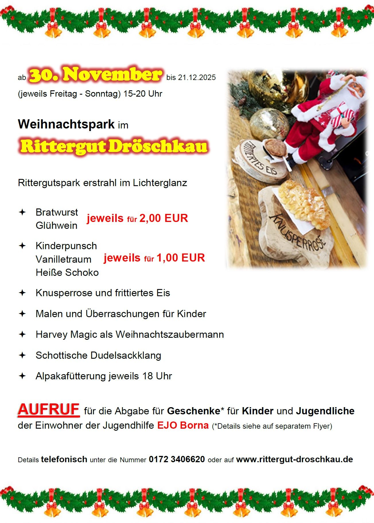 Weitere Anfragen telefonisch (0172 3406620) oder per E-Mail (service@rittergut-droschkau.de)